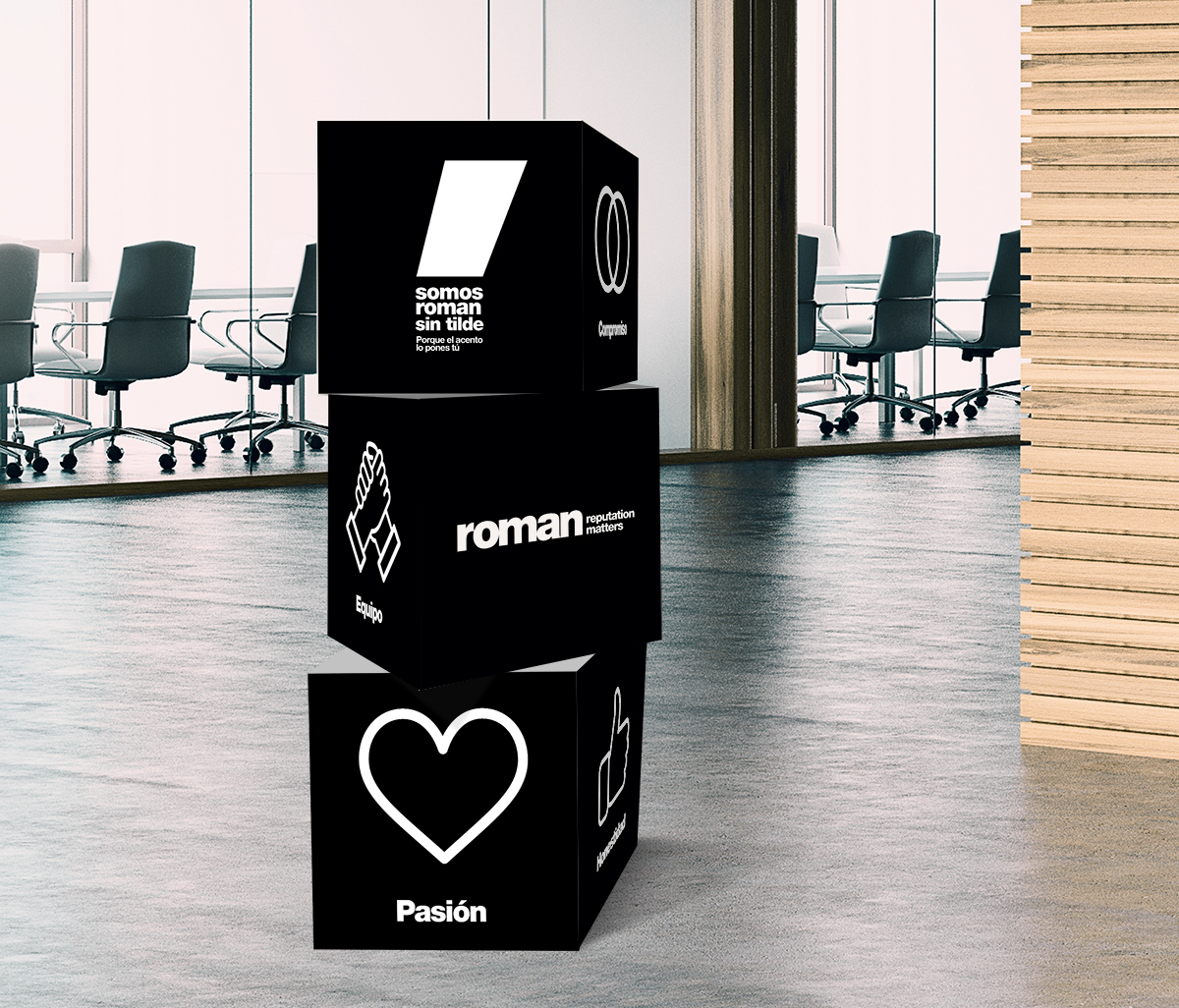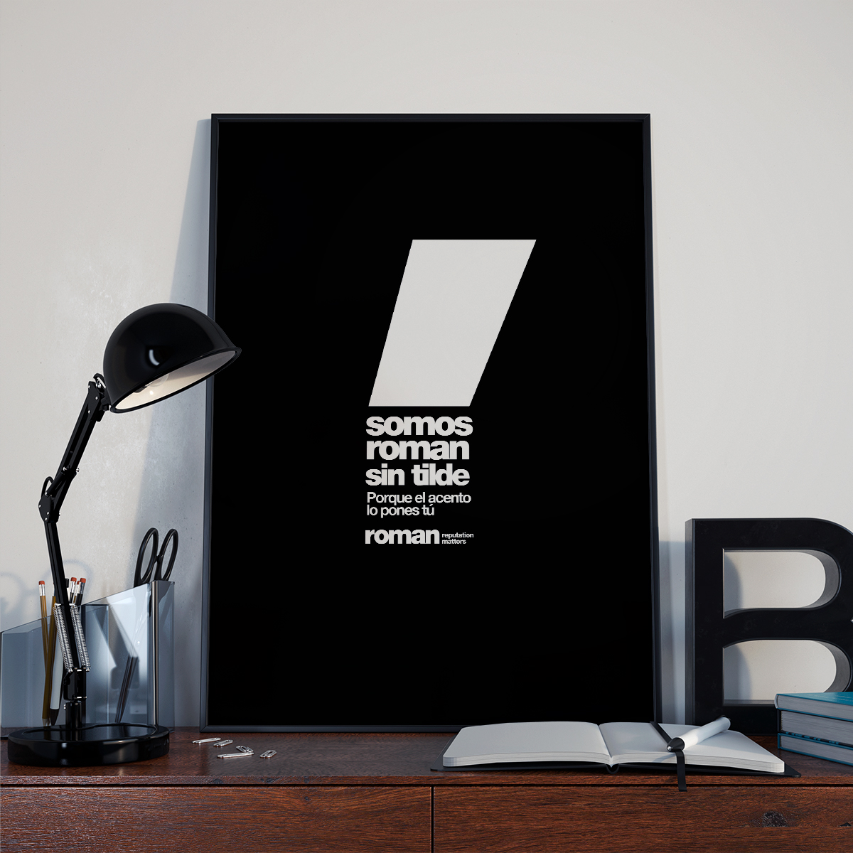 Realice los visuales para la campaña de comunicación interna de la agencia roman, para transmitir a todos los empleados los valores de la empresa, con el concepto y claim: «somos roman sin tilde porque el acento lo pones tú»